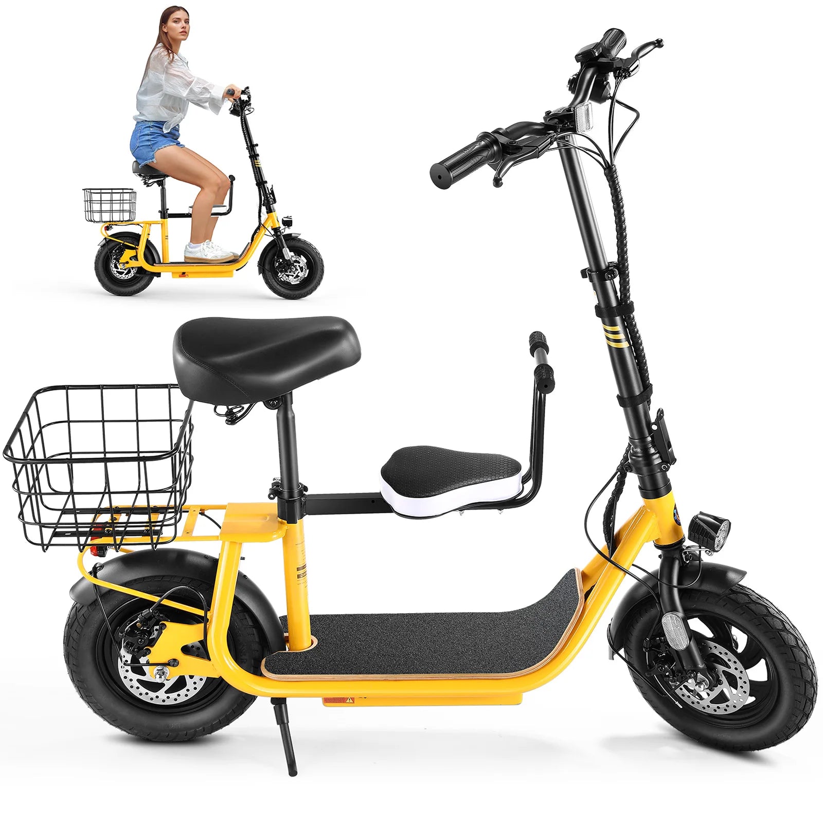 Foldable Electric Scooter with Child Seat and Rear Basket