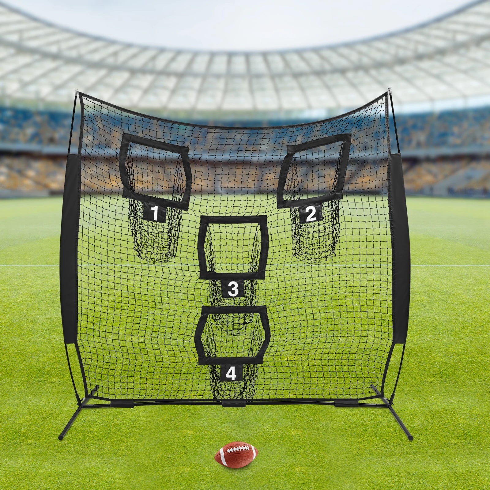 Sharpen your passing and throwing skills with this high-quality football training target net. Designed for athletes of all levels, this net features four strategically placed target pockets that help improve aim, accuracy, and overall performance. Built with a durable polyester net, 420D Oxford cloth, and a strong fiberglass and iron frame, this net offers long-lasting use and excellent impact resistance.